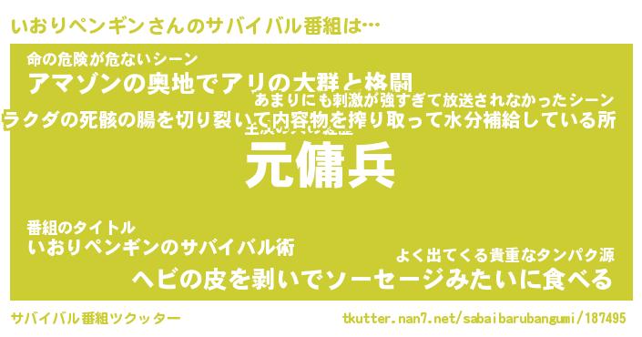 | 胡散臭い通販商品みたいなあだ名 | 『億万長者になれるブレスレット…その名も「いおりペンギン」』 |