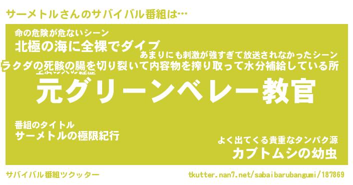 | ポケモン風あだ名 | 『サーチュウ』『サーメダネ』 |