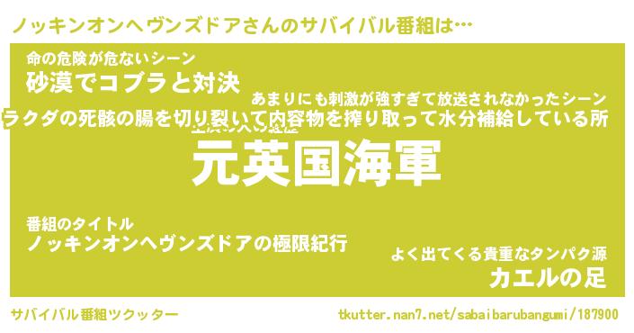 | 伝説のあだ名 | 『伝説のスナイパーノッキンオンヘヴンズドア』 |