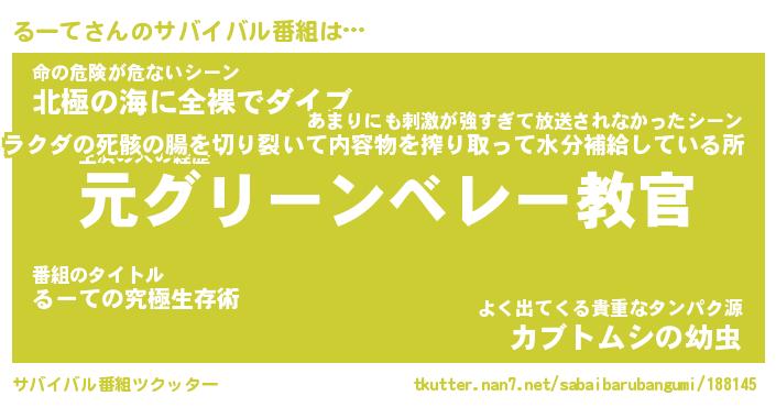 | ヒーロー風カッコイイあだ名 | 『スーパールーテ』『ウルトラるーてマン』 |