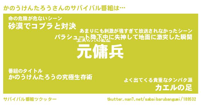 | 伝説のあだ名 | 『封印されし傭兵かのうけんたろう』 |