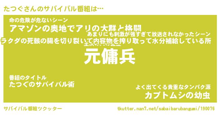 | 胡散臭い通販商品みたいなあだ名 | 『億万長者になれるブレスレット…その名も「たつぐ」』 |