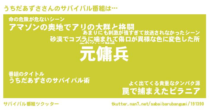 | 胡散臭い通販商品みたいなあだ名 | 『億万長者になれるブレスレット…その名も「うちだあずさ」』 |