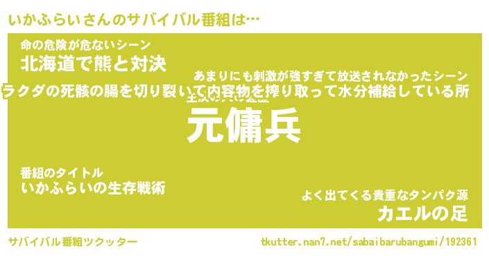 | 胡散臭い通販商品みたいなあだ名 | 『億万長者になれるブレスレット…その名も「いかふらい」』 |