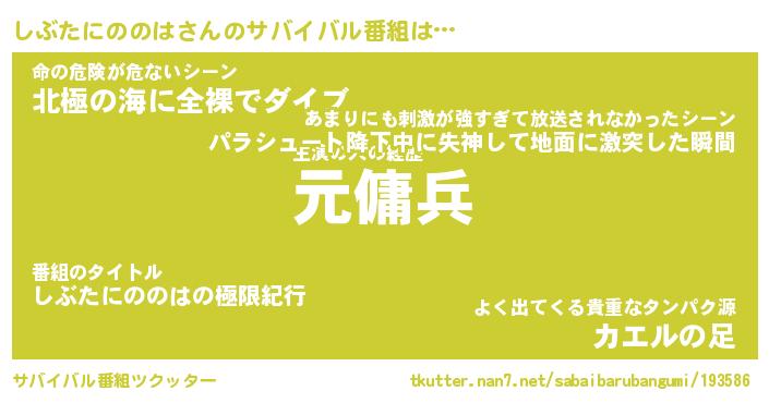 | 胡散臭い通販商品みたいなあだ名 | 『億万長者になれるブレスレット…その名も「しぶたにののは」』 |