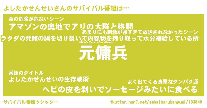 | ヘコむあだ名 | 『よしにー』『なまこ酢』 |