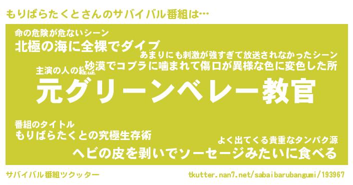 | ヘコむあだ名 | 『もりにー』『なまこ酢』『もり太郎』 |