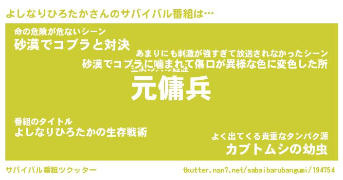 | ヘコむあだ名 | 『よしにー』『つくし』『よしお』 |
