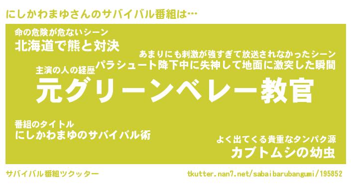 | 恥ずかしいあだ名 | 『プリティーにしかわまゆ』『にしっちょ』 |