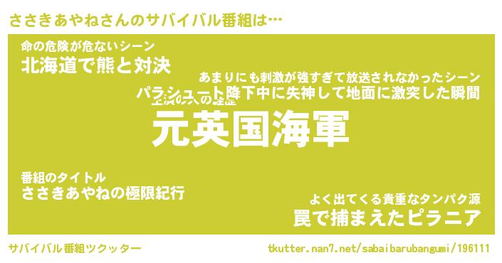 | ヘコむあだ名 | 『ささにー』『なまこ酢』『ささを』 |