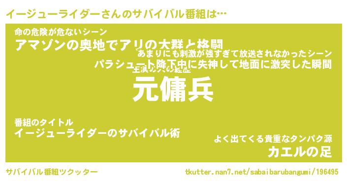 | 胡散臭い通販商品みたいなあだ名 | 『億万長者になれるブレスレット…その名も「イージューライダー」』 |