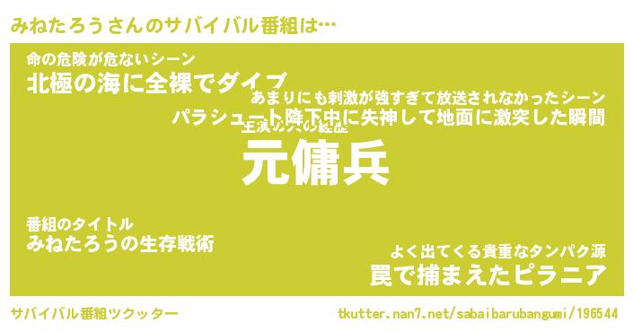 | 伝説のあだ名 | 『封印されし傭兵みねたろう』 |