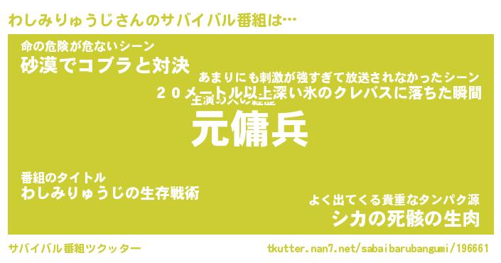 | 伝説のあだ名 | 『封印されし傭兵わしみりゅうじ』 |