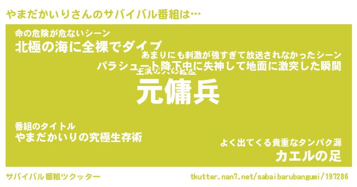 | 伝説のあだ名 | 『封印されし傭兵やまだかいり』 |