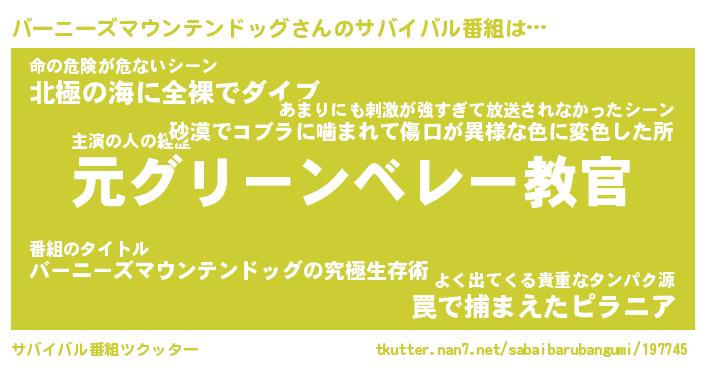 | 欧米人風あだ名 | 『マイケルバーニーズマウンテンドッグ』 |