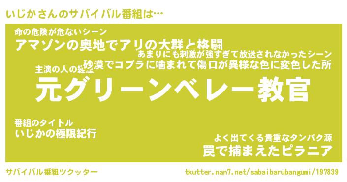 | ヒーロー風カッコイイあだ名 | 『スーパーイジカ』『ウルトラいじかマン』 |