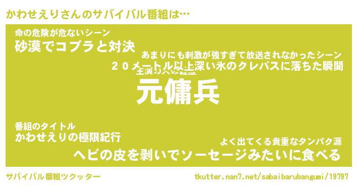 | 伝説のあだ名 | 『封印されし傭兵かわせえり』 |
