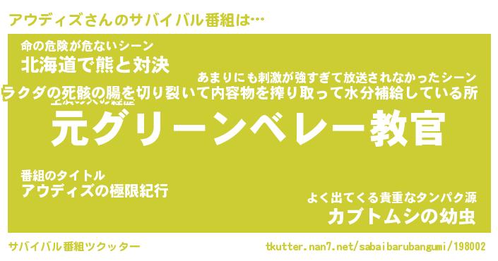 | ヒーロー風カッコイイあだ名 | 『スーパーアウディズ』『暗黒騎士アウ』 |