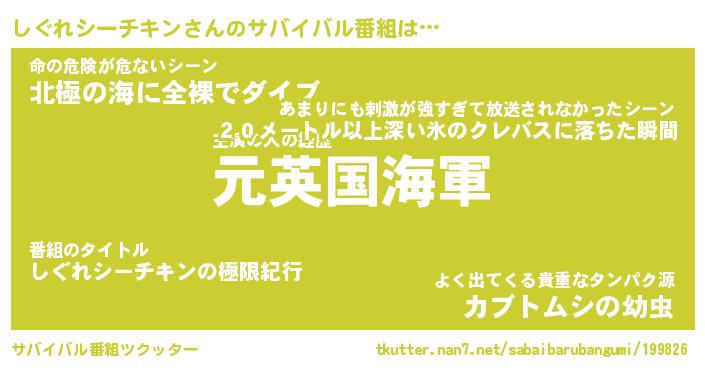 | 伝説のあだ名 | 『伝説のスナイパーしぐれシーチキン』 |