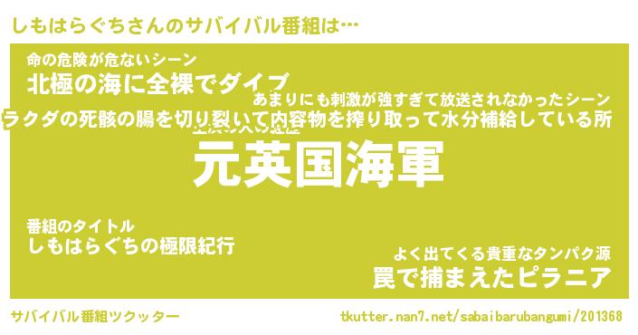 | 胡散臭い通販商品みたいなあだ名 | 『必ず成功するブレスレット…その名も「しもはらぐち」』 |