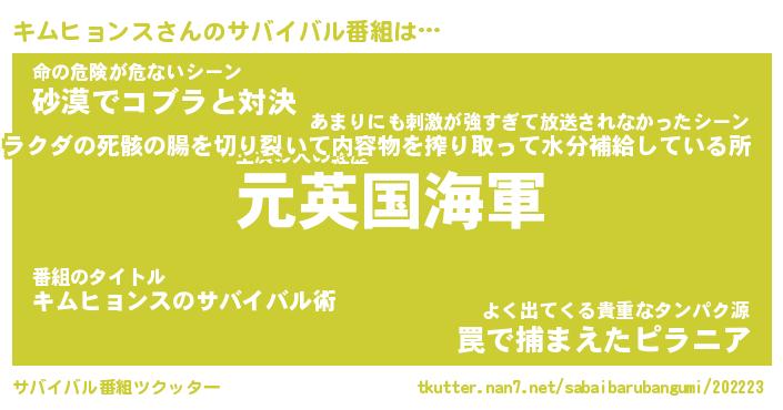 キムヒョンスさんのサバイバル番組をツクッター!