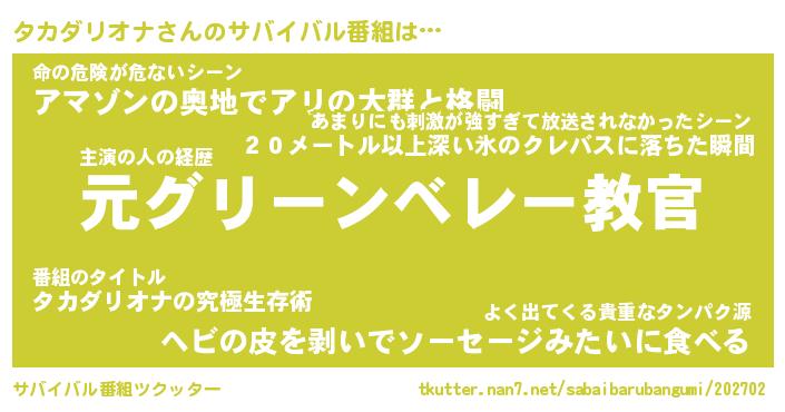 | 2回繰り返すあだ名 | 『タカタカ』『タタカカ』『くたくた』 |
