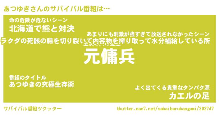 | 意味不明あだ名 | 『ペロリンあつゆき』『永久保存あつゆき』 |