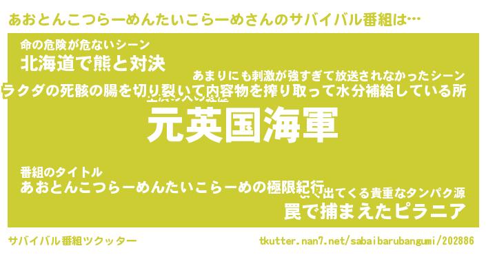 | 胡散臭い通販商品みたいなあだ名 | 『必ず成功するブレスレット…その名も「あおとんこつらーめんたいこらーめ」』 |