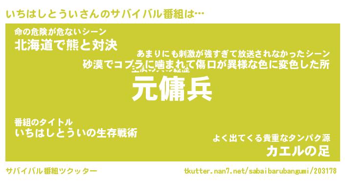 | 胡散臭い通販商品みたいなあだ名 | 『億万長者になれる霊験あらたかなお札…その名も「いちはしとうい」』 |