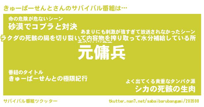 | 伝説のあだ名 | 『封印されし傭兵きゅーぱーせんと』 |