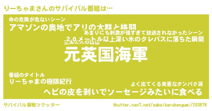 | 伝説のあだ名 | 『伝説のスナイパーりーちゃま』 |