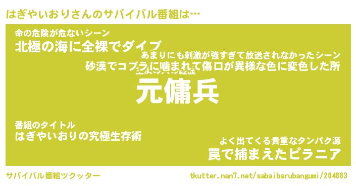 | 伝説のあだ名 | 『封印されしスナイパーはぎやいおり』 |