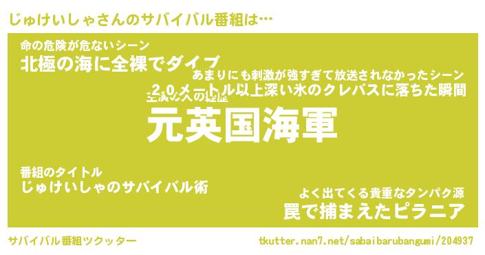 | 伝説のあだ名 | 『伝説のスナイパーじゅけいしゃ』 |