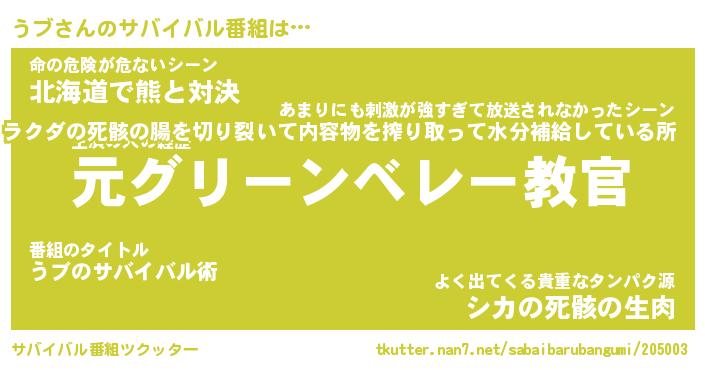 | ヘコむあだ名 | 『うブもー』『酢こんぶ』『うブを』 |