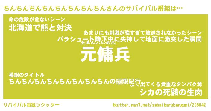 | 番長 | ちんちんちんちんちんちんちんちん、またの名を・・・!『実はそうでもないちんちんちんちんちんちんちんちんさん』 |