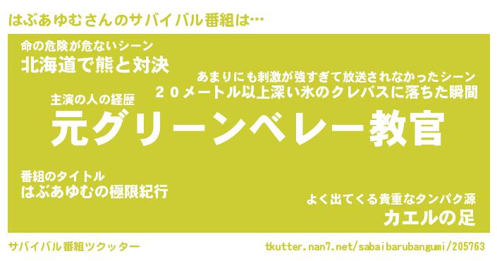 | ヘコむあだ名 | 『はぶにー』『なまこ酢』『はぶ太郎』 |