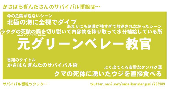 | 胡散臭い通販商品みたいなあだ名 | 『必ず成功するブレスレット…その名も「かさはらぎんた」』 |