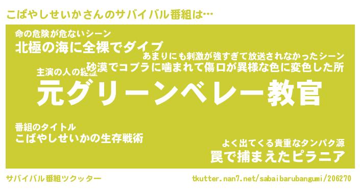 | 胡散臭い通販商品みたいなあだ名 | 『モテモテ間違いなし水晶球…その名も「こばやしせいか」』 |