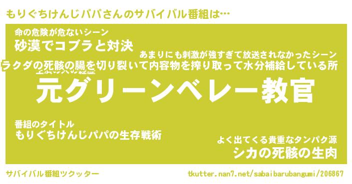 伝説のあだ名 | 『不死鳥のスナイパーもりぐちけんじパパ』 |