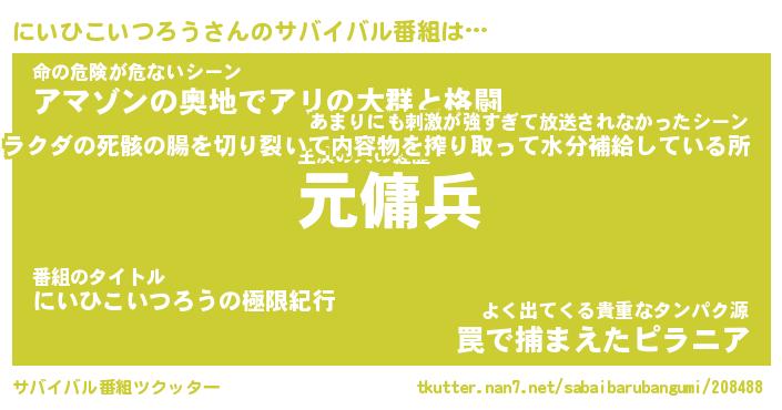 | 胡散臭い通販商品みたいなあだ名 | 『億万長者になれるブレスレット…その名も「にいひこいつろう」』 |