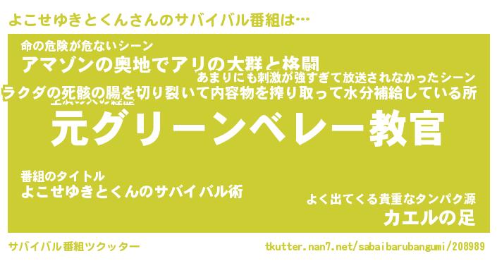 | 伝説のあだ名 | 『不死鳥のスナイパーよこせゆきとくん』 |