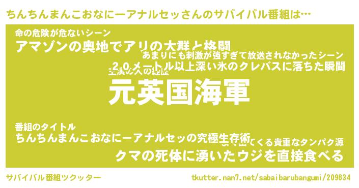 | 伝説のあだ名 | 『伝説のスナイパーちんちんまんこおなにーアナルセッ』 |