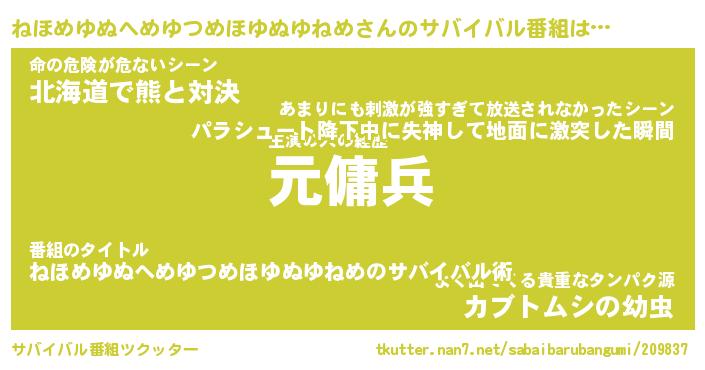 | 料理風あだ名 | 『ネギたっぷりねほめゆぬへめゆつめほゆぬゆねめの南蛮漬け』 |