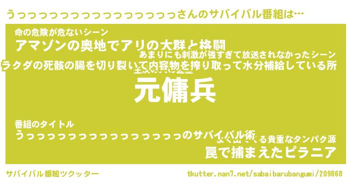 | 胡散臭い通販商品みたいなあだ名 | 『億万長者になれる水晶球…その名も「うっっっっっっっっっっっっっっっ」』 |