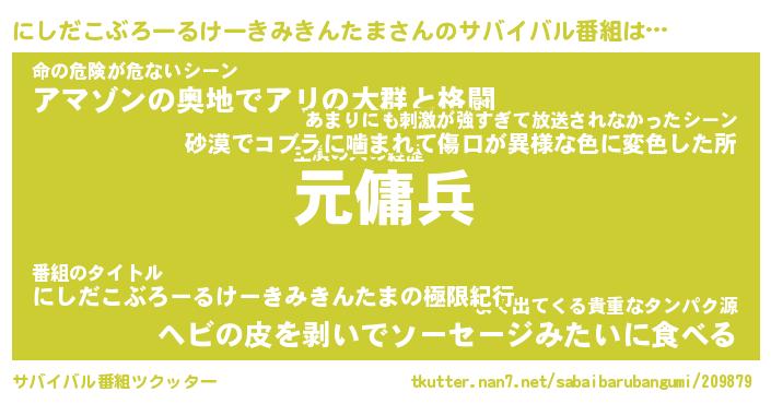 | 肩書あだ名 | 『にしだこぶろーるけーきみきんたま御曹司』 |