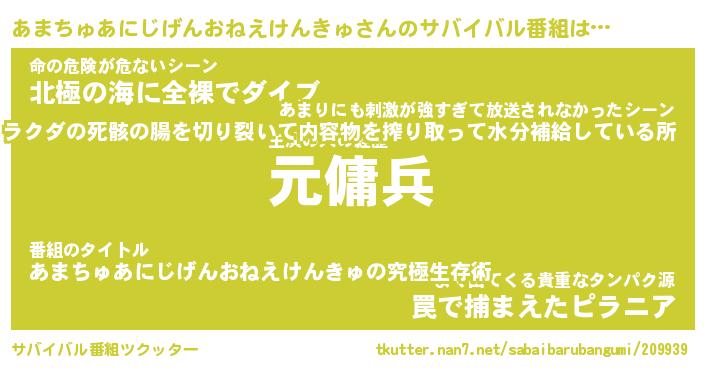 | 欧米人風あだ名 | 『マイケルあまちゅあにじげんおねえけんきゅ』 |
