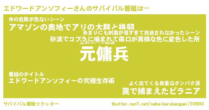 | ツイッター | エドワードアンソフィーさんのツイッターID『fukuyoka_man』 |