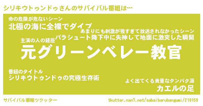 | 料理風あだ名 | 『節約★シリキウトゥンドゥと油揚げの玉子丼』 |