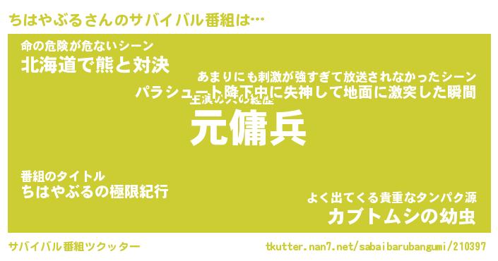 | ヒーロー風カッコイイあだ名 | 『スーパーチハヤブル』『黄金騎士チハ』 |