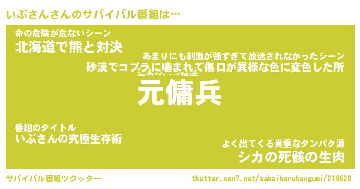 | 欧米人風あだ名 | 『マイケルいぶさん』『ウサインいぶさん』 |